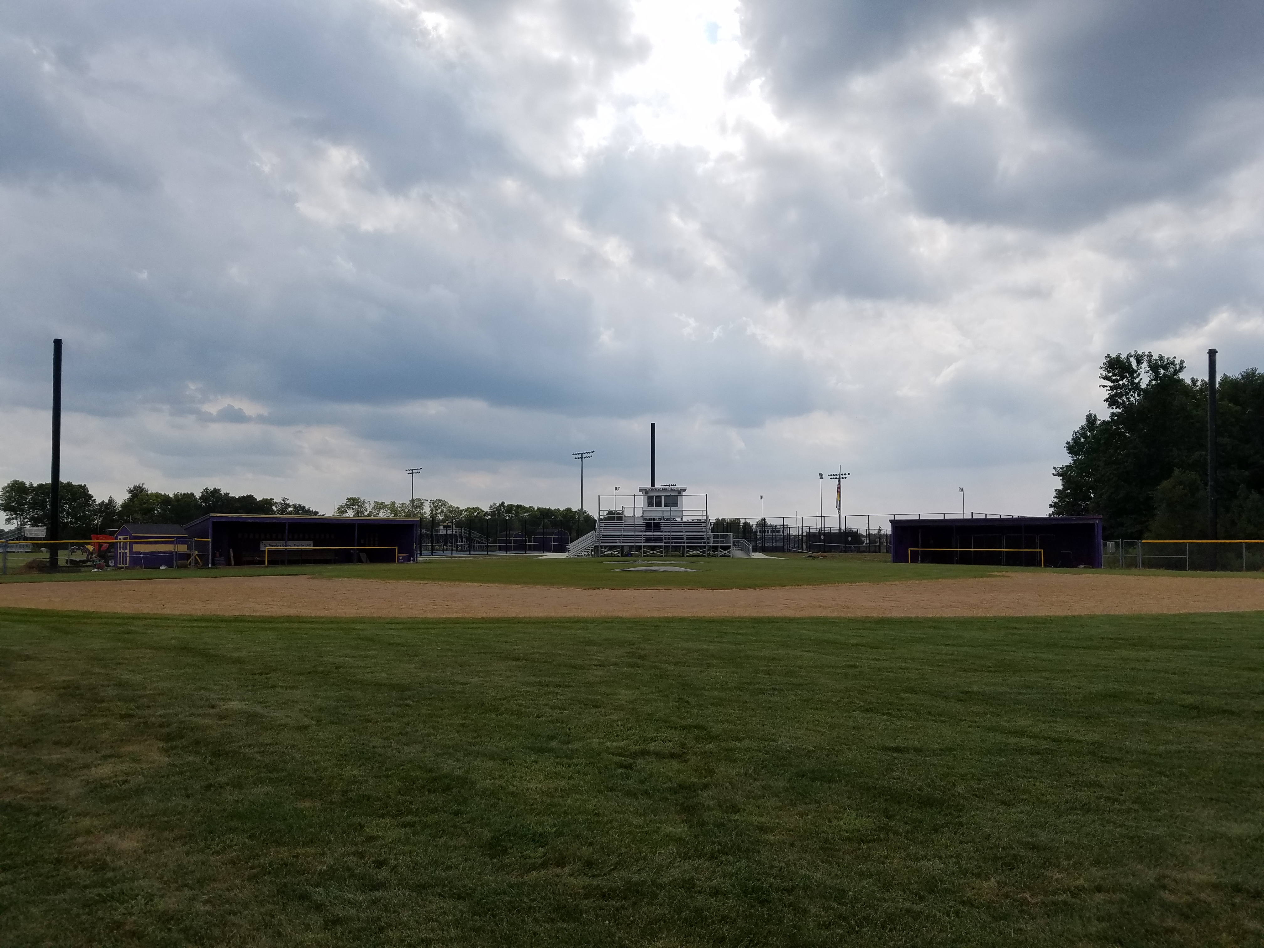 At Guerin Catholic High School Custom Net Backstops completed a complete redesign of the backstop and dugout rails of their baseball facility backstop and dugout rails. For the reconstruction we installed a 40’ high tension backstop net, manufactured and installed custom-made high-density impact padding across the main section of the backstop, and then manufactured and installed custom-made dugout rails with padding a vinyl cover.